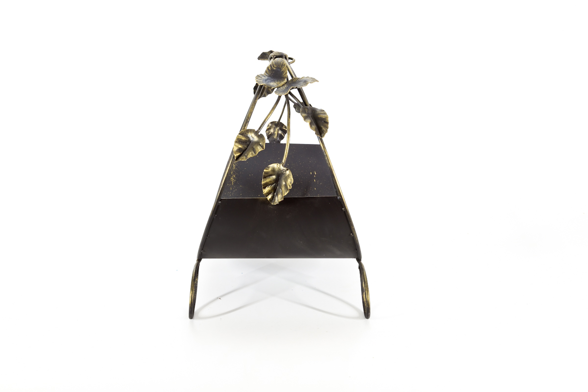 Дровница изготовлена из прутка ф8,0мм, в основании лист 0,8мм. Добавлены элементы горячей ковки в виде бабочки, листьев и веток. Цвет черный с золотой патиной. Покрыта термостойким лаком и эмалью.